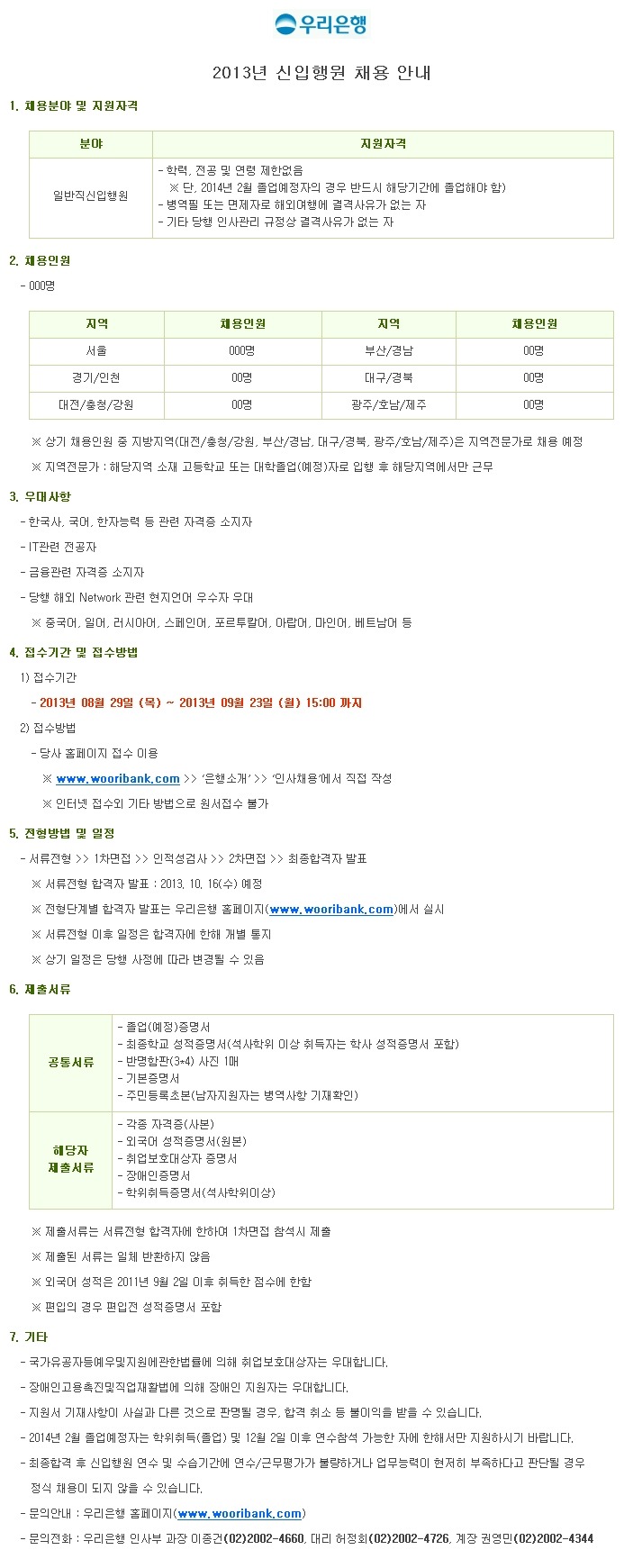 우리은행 채용과 관련한 정보는 여기까지 입니다.